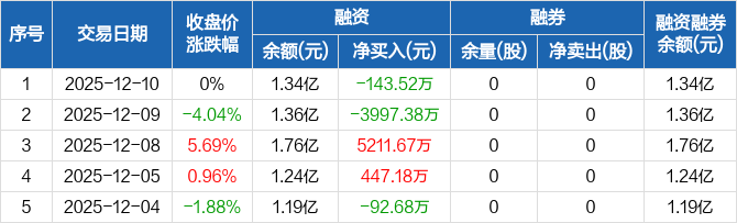 华远控股:融资净偿还143.52万元,融资余额1.34亿元(12-10)