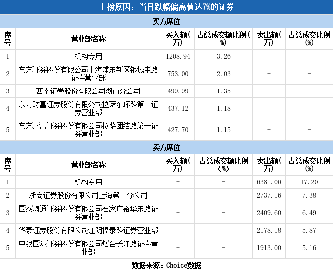 上交所2025年10月14日交易公开信息显示,闻泰科技因属于当日跌幅偏离值达7%的证券而登上龙虎榜。闻泰科技当日报收37.65元,涨跌幅为-9.99%,偏离值达-9.37%,换手率0.79%,振幅0.00%,成交额3.71亿元。