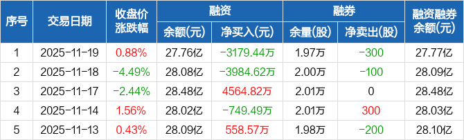 闻泰科技:融资净偿还3179.44万元,融资余额27.76亿元(11-19)