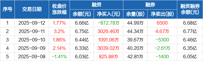 海航科技:融资净偿还872.78万元,融资余额6.66亿元(09-12)