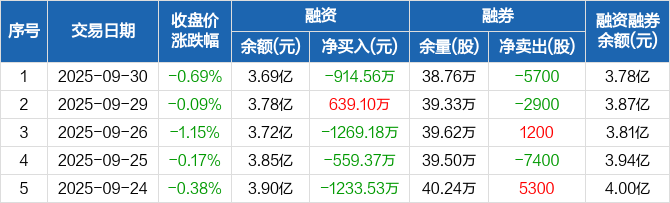 锦江酒店:融资净偿还914.56万元,融资余额3.69亿元(09-30)