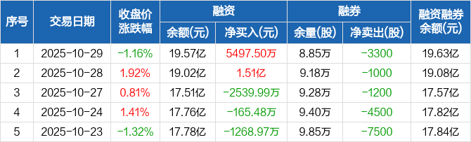 中航沈飞:融资净买入5497.5万元,融资余额19.57亿元(10-29)