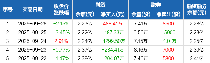 安徽合力:融资净买入488.41万元,融资余额2.27亿元(09-26)