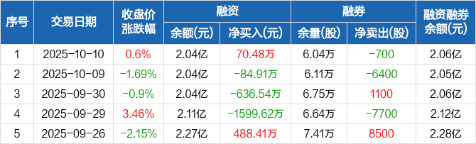 安徽合力:融资净买入70.48万元,融资余额2.04亿元(10-10)