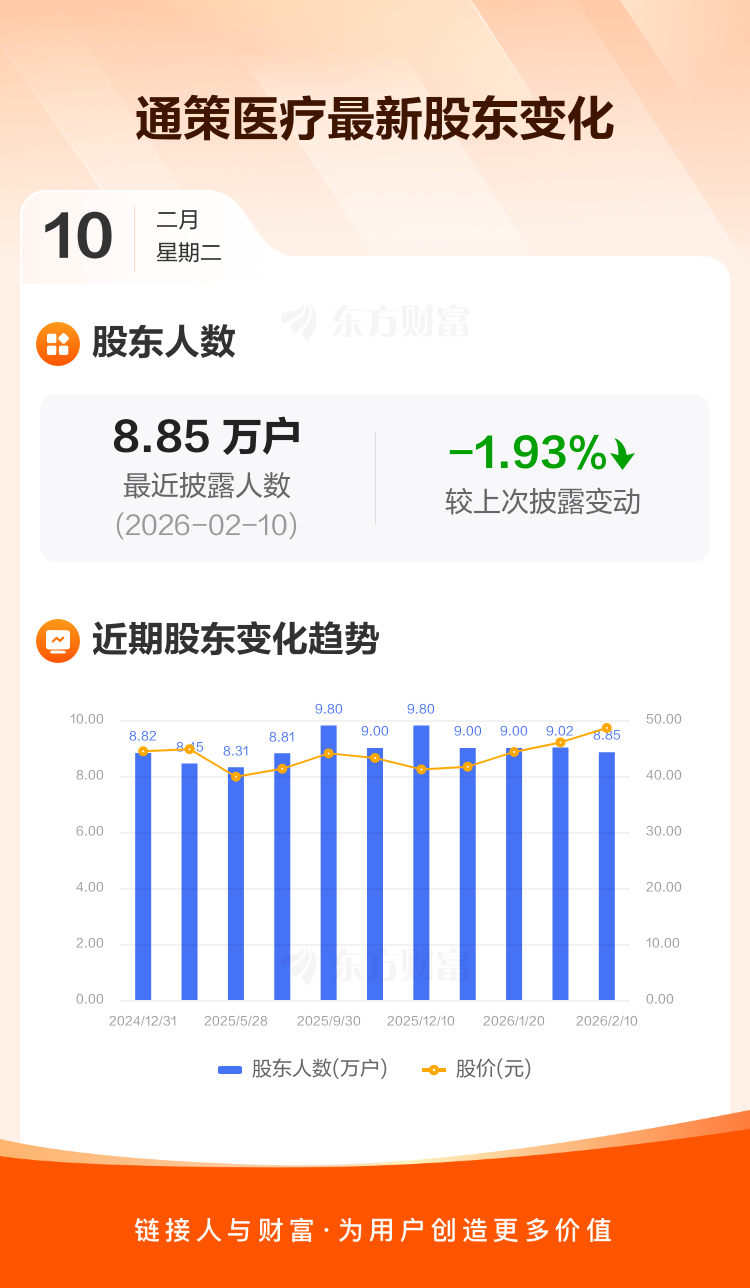 通策医疗:截至2月10日最新股东户数8.85万户,较上期减少1.93%