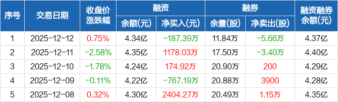 中国海防:融资净偿还187.39万元,融资余额4.34亿元(12-12)