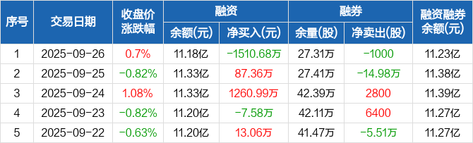 中航重机:融资净偿还1510.68万元,融资余额11.18亿元(09-26)
