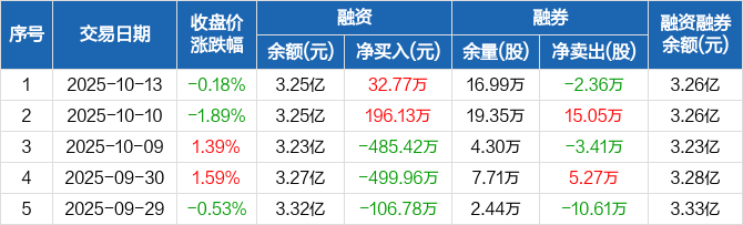 综艺股份:融资净买入32.77万元,融资余额3.25亿元(10-13)