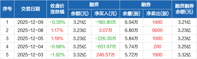综艺股份:融资净偿还180.8万元,融资余额3.21亿元(12-09)
