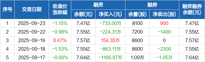 广誉远:融资净偿还733万元,融资余额7.47亿元(09-23)