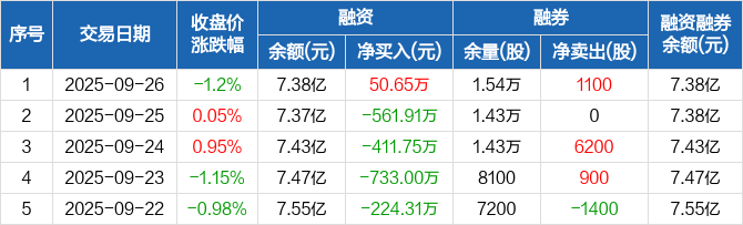 广誉远:融资净买入50.65万元,融资余额7.38亿元(09-26)