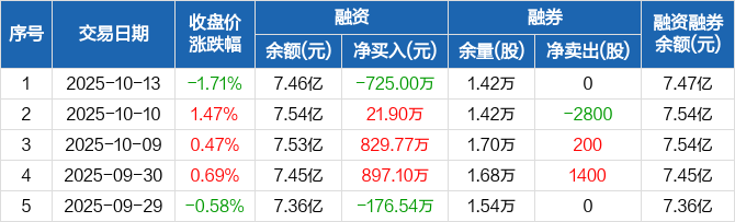 广誉远:融资净偿还725万元,融资余额7.46亿元(10-13)