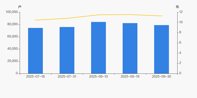 截至2025年9月30日,公司最新A股总股本为9.14亿股,其中流通股本为6.72亿股。户均持有流通股数量由上期的8167股上升至8500股,户均流通市值9.59万元。