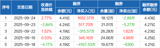 东方通信:融资净买入1652.37万元,融资余额4.41亿元(09-24)