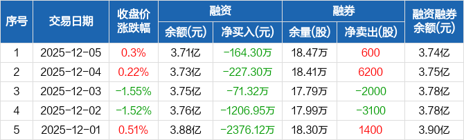东方通信:连续5日融资净偿还累计4045.99万元(12-05)
