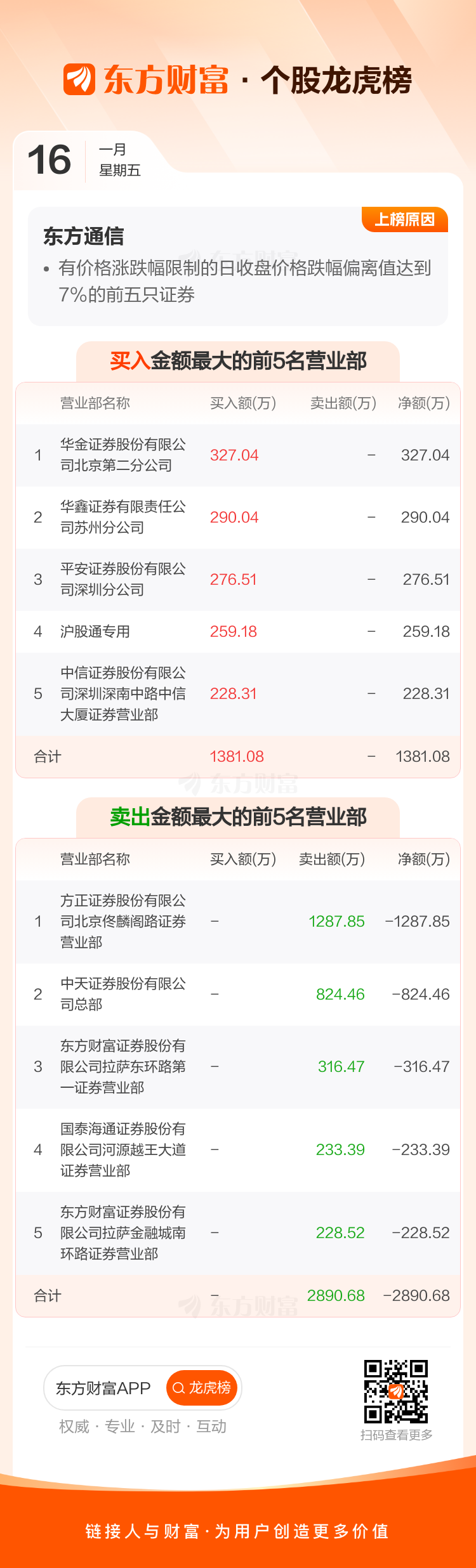 东方通信(600776)龙虎榜数据(01-16)