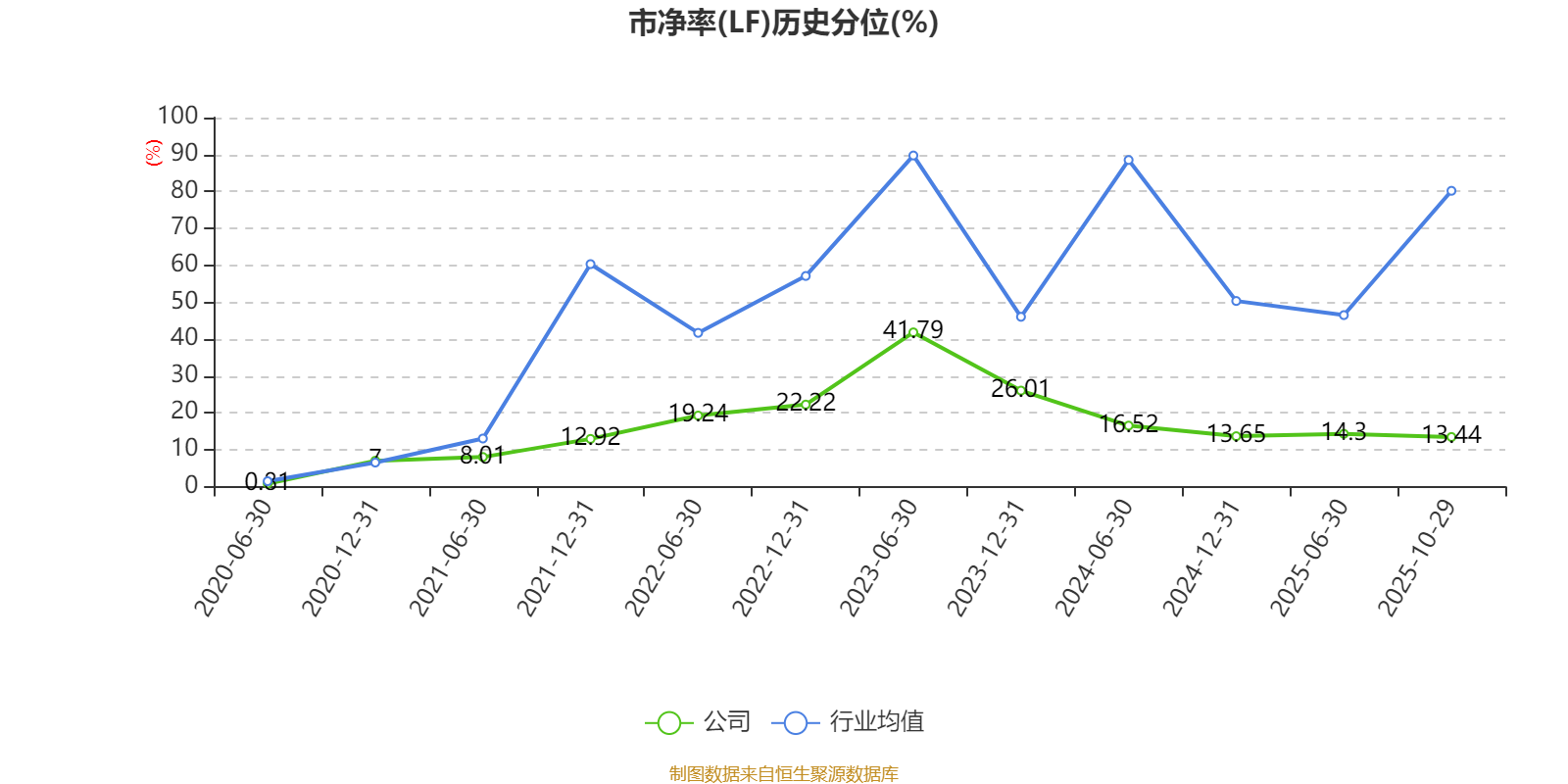 市盈率、市净率为负时,不显示当期分位数,会导致折线图中断。
