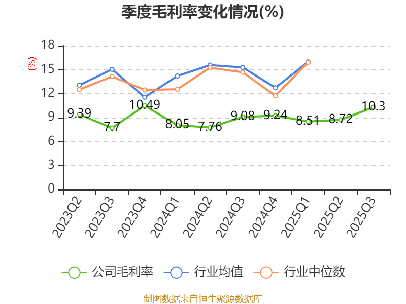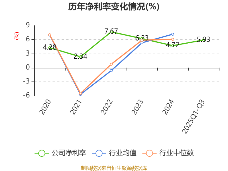 资产重大变化方面,截至2025年三季度末,公司货币资金较上年末增加29.89%,占公司总资产比重上升5.48个百分点;固定资产较上年末减少4.21%,占公司总资产比重下降3.56个百分点;应收票据及应收账款较上年末减少20.61%,占公司总资产比重下降2.21个百分点;在建工程合计较上年末增加55.81%,占公司总资产比重上升1.63个百分点。