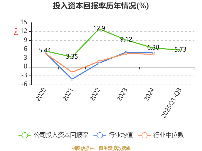 盈利能力方面, 2025年前三季度公司加权平均净资产收益率为6.12%,同比上升0.96个百分点。公司2025年前三季度投入资本回报率为5.73%,较上年同期上升0.9个百分点。