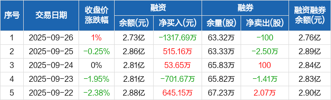 新钢股份:融资净偿还1317.69万元,融资余额2.73亿元(09-26)