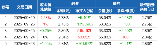 新钢股份:融资净偿还5.4万元,融资余额2.73亿元(09-29)
