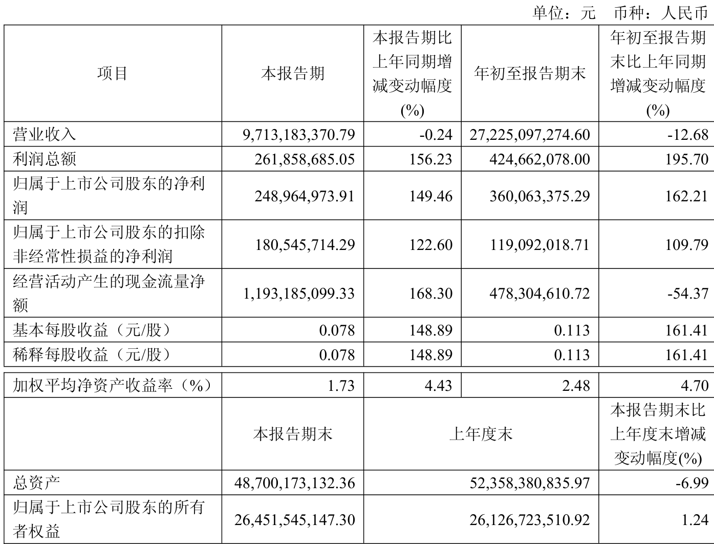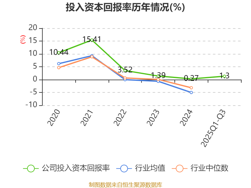 盈利能力方面, 2025年前三季度公司加权平均净资产收益率为2.48%,同比上升4.7个百分点。公司2025年前三季度投入资本回报率为1.3%,较上年同期上升2.53个百分点。