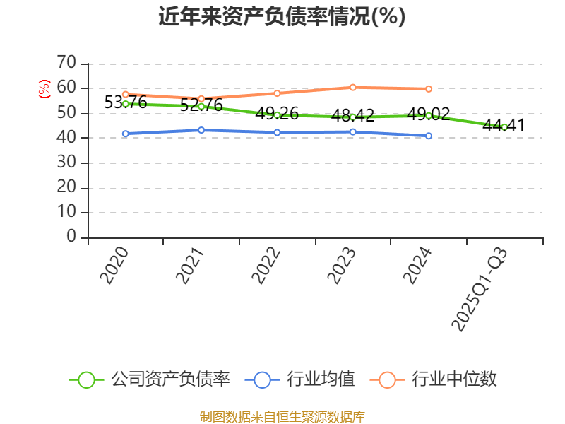 2025年前三季度,公司流动比率为1.02,速动比率为0.86。