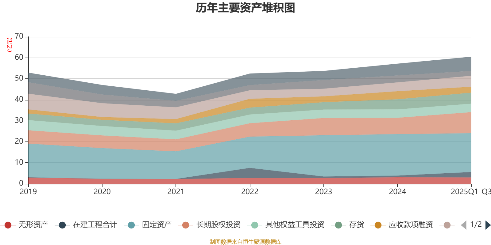 资产重大变化方面,截至2025年三季度末,公司固定资产较上年末减少6.34%,占公司总资产比重下降3.96个百分点;长期股权投资较上年末增加29.23%,占公司总资产比重上升3.01个百分点;在建工程合计较上年末增加221.88%,占公司总资产比重上升2.88个百分点;应收款项融资较上年末减少27.26%,占公司总资产比重下降2.1个百分点。