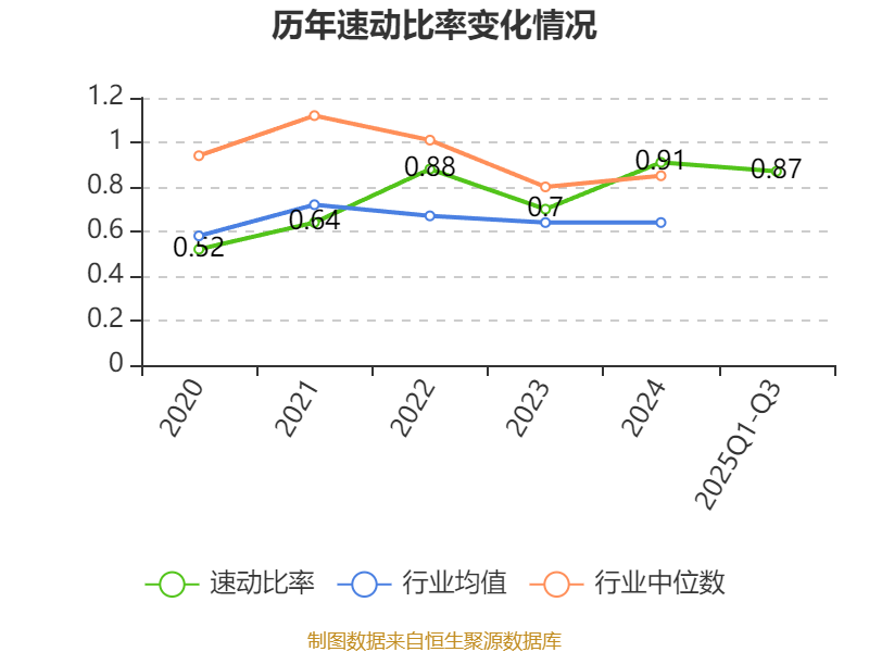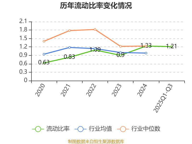 2025年前三季度,公司流动比率为1.21,速动比率为0.87。