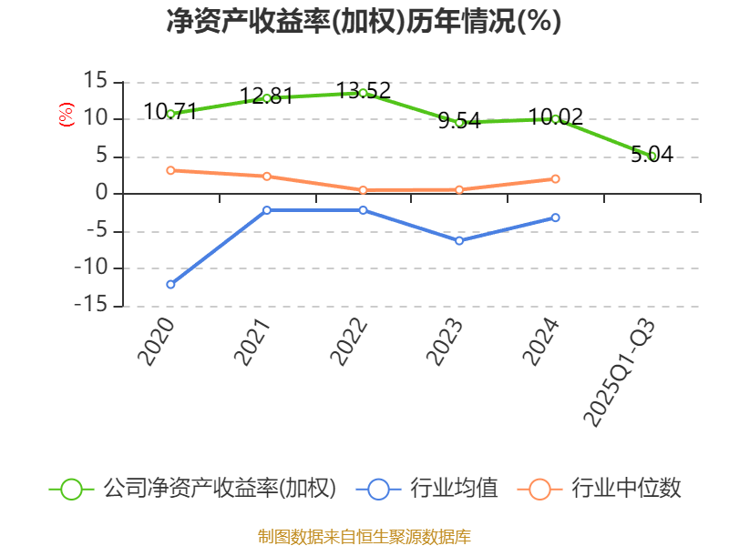 盈利能力方面, 2025年前三季度公司加权平均净资产收益率为5.04%,同比下降3.42个百分点。公司2025年前三季度投入资本回报率为3.95%,较上年同期下降2.36个百分点。