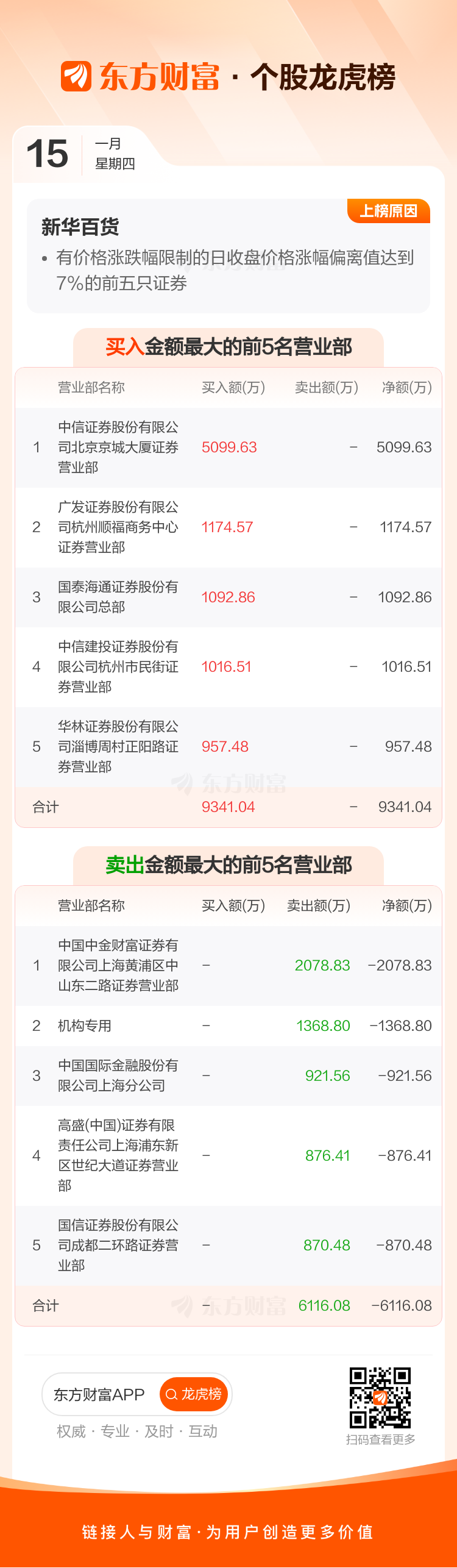 新华百货(600785)龙虎榜数据(01-15)