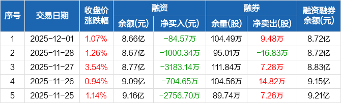 国电电力:融资余额8.66亿元,创近一年新低(12-01)