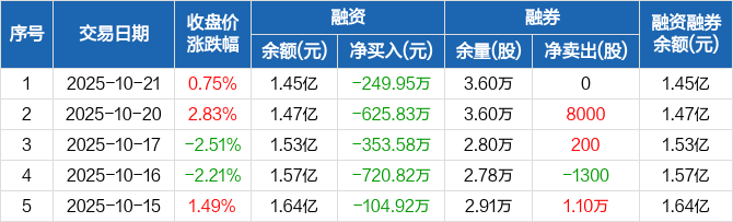 渤海化学:连续5日融资净偿还累计2055.1万元(10-21)