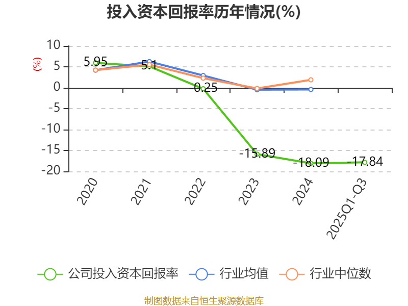 盈利能力方面, 2025年前三季度公司加权平均净资产收益率为-39.33%,同比下降14.03个百分点。公司2025年前三季度投入资本回报率为-17.84%,较上年同期下降2.32个百分点。