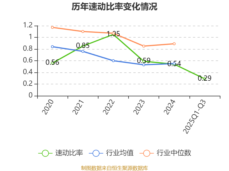 2025年前三季度,公司流动比率为0.61,速动比率为0.29。