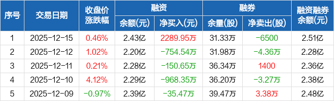 华新建材:融资净买入2289.95万元,融资余额2.43亿元(12-15)
