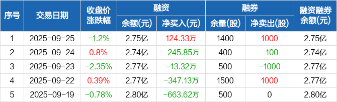 悦达投资:融资净买入124.33万元,融资余额2.75亿元(09-25)