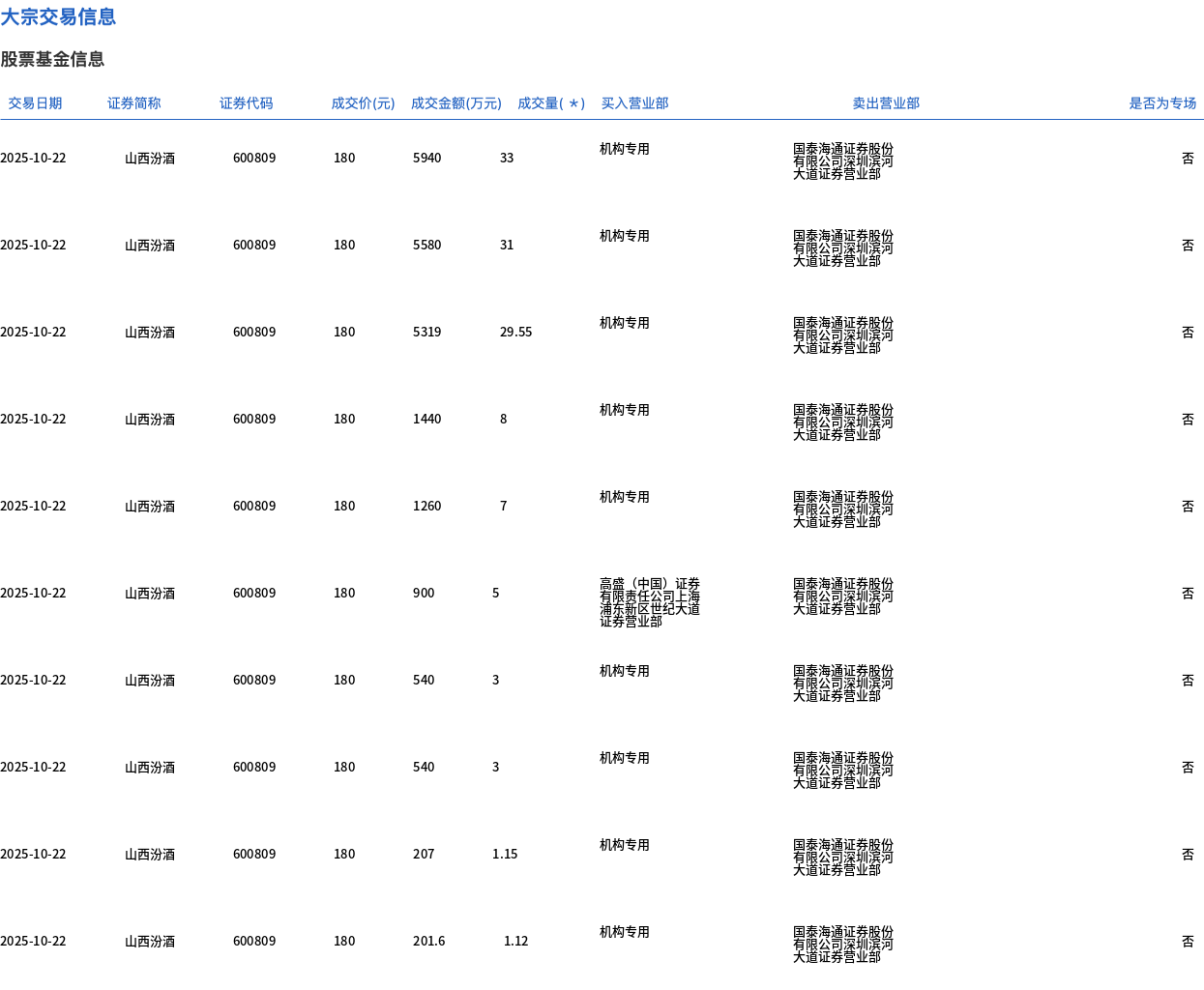 山西汾酒今日大宗交易折价成交121.82万股,成交额2.19亿元