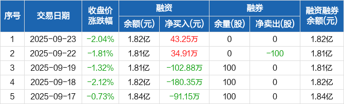 中路股份:融资净买入43.25万元,融资余额1.82亿元(09-23)