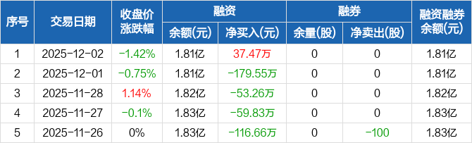 中路股份:融资净买入37.47万元,融资余额1.81亿元(12-02)