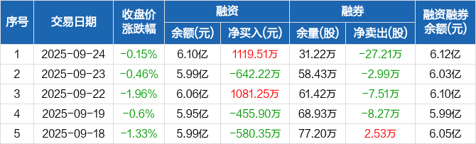 隧道股份:融资净买入1119.51万元,融资余额6.1亿元(09-24)