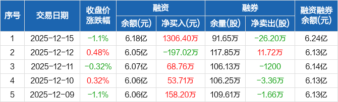 隧道股份:融资净买入1306.4万元,融资余额6.18亿元(12-15)