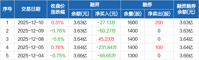 新华传媒:融资净偿还27.13万元,融资余额3.63亿元(12-10)