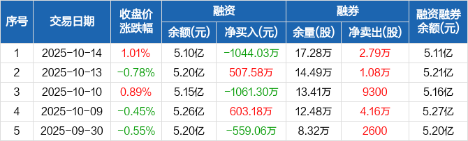 百联股份:融资净偿还1044.03万元,融资余额5.1亿元(10-14)