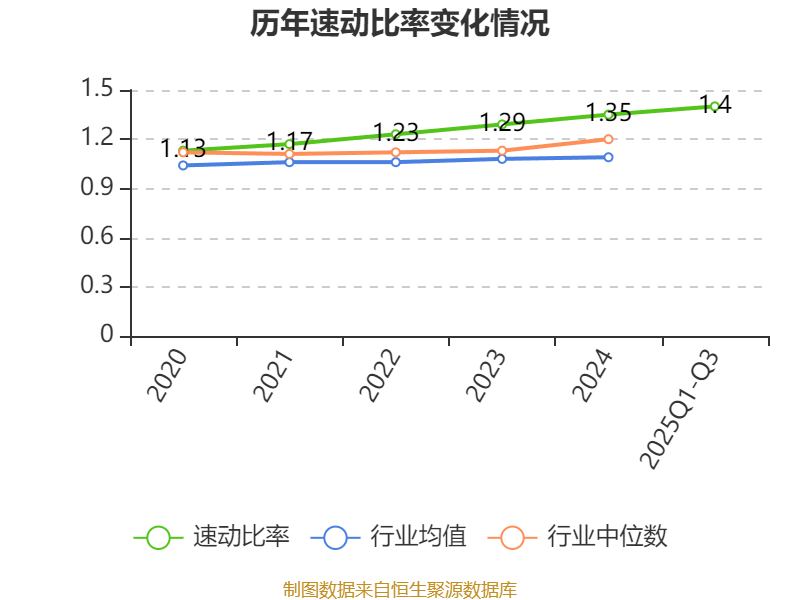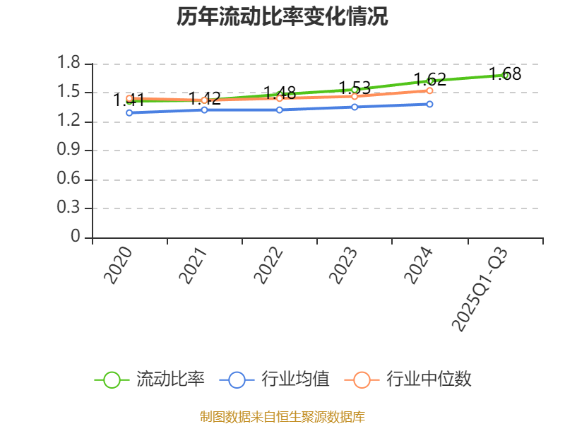 2025年前三季度,公司流动比率为1.68,速动比率为1.4。