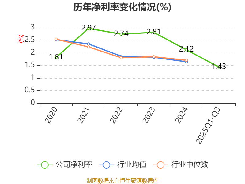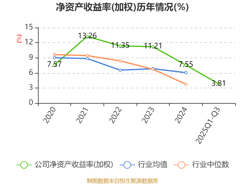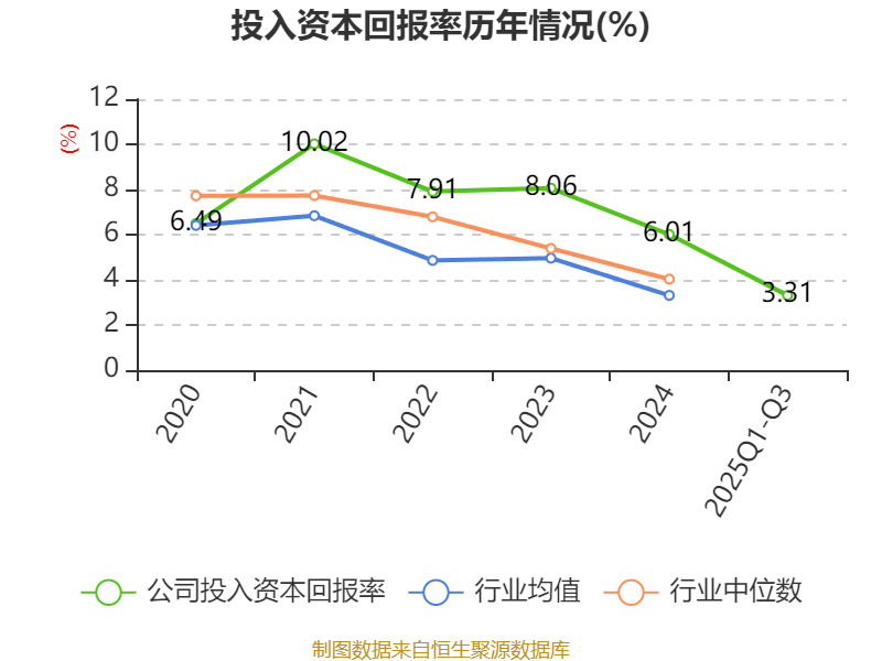 盈利能力方面, 2025年前三季度公司加权平均净资产收益率为3.81%,同比下降3.51个百分点。公司2025年前三季度投入资本回报率为3.31%,较上年同期下降2.34个百分点。