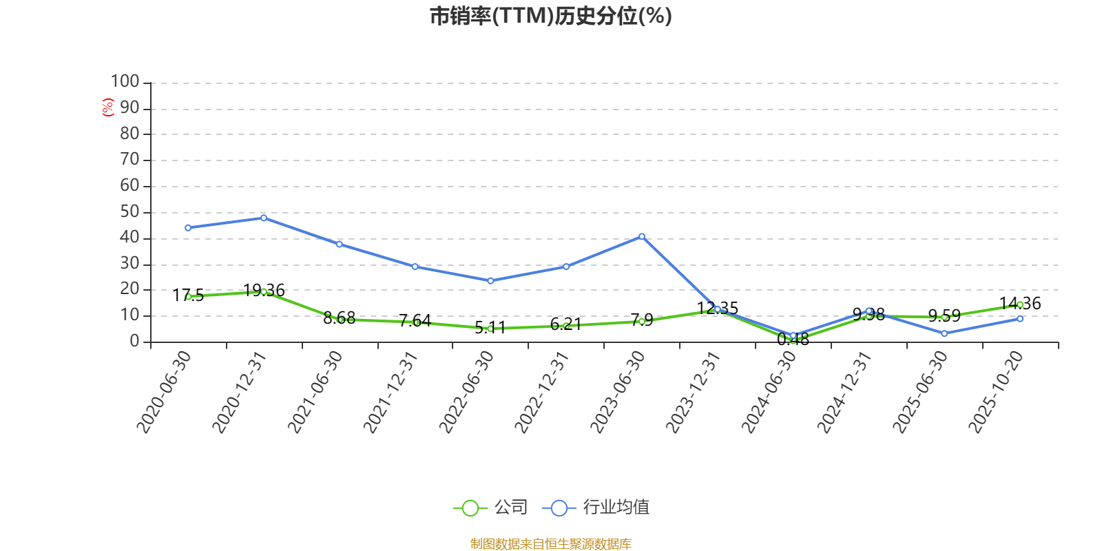 以10月20日收盘价计算,人民同泰目前市盈率(TTM)约为40.01倍,市净率(LF)约1.59倍,市销率(TTM)约0.47倍。