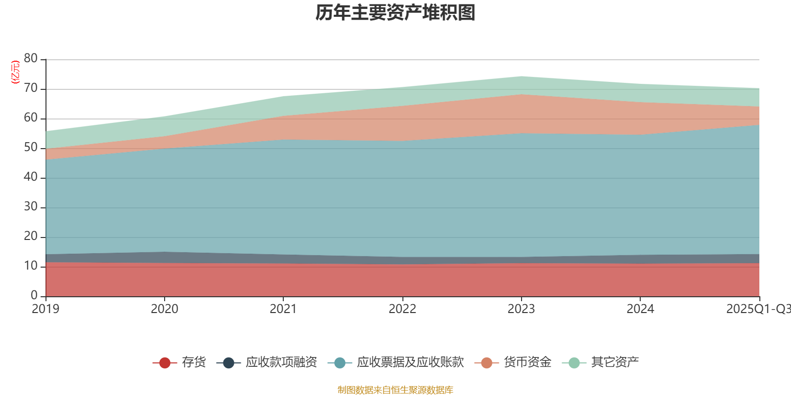 资产重大变化方面,截至2025年三季度末,公司货币资金较上年末减少43.6%,占公司总资产比重下降6.51个百分点;应收票据及应收账款较上年末增加7.55%,占公司总资产比重上升5.52个百分点;存货较上年末增加1.39%,占公司总资产比重上升0.53个百分点;应收款项融资较上年末增加3.44%,占公司总资产比重上升0.23个百分点。
