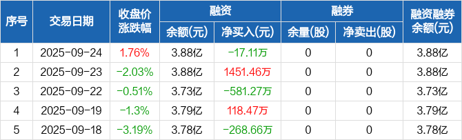 香溢融通:融资净偿还17.11万元,融资余额3.88亿元(09-24)