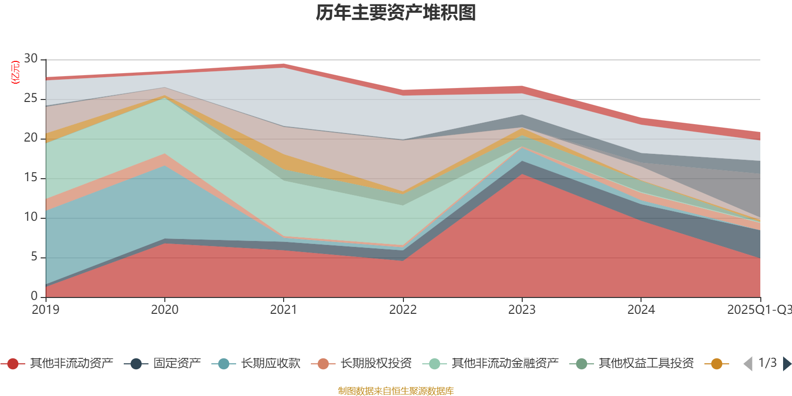 资产重大变化方面,截至2025年三季度末,公司交易性金融资产合计较上年末增加1006%,占公司总资产比重上升24.35个百分点;其他非流动资产较上年末减少49.19%,占公司总资产比重下降19.02个百分点;固定资产较上年末增加69.05%,占公司总资产比重上升7.74个百分点;一年内到期的非流动资产较上年末减少82.74%,占公司总资产比重下降6.24个百分点。
